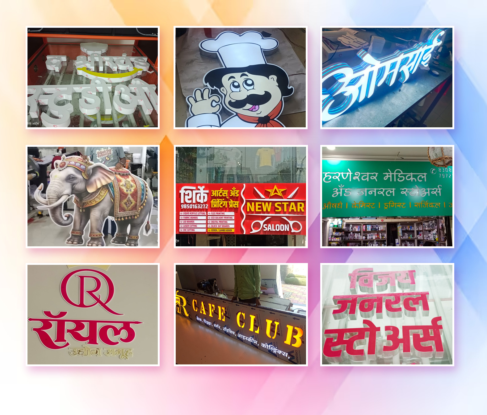 This signage is normally of 18 gauge thick iron Frame mounted with 3mm ACP along with 12mm Thick solid Acrylic Letter shaped by Laser Machine As per the specified font and color of the customer. The signage is grouted as per specification by the Customer or our Expert team decision after visiting The site